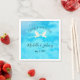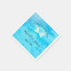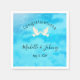Romantisches Thema für Papierservietten. Zwei Tauben mit rosa Herz auf schönem blauen Hintergrund. Bearbeiten von Text und Bild.