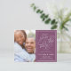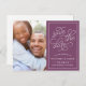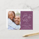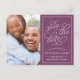Modernes Foto Save the Date Postcard in lila und weißem Pflaumenmuster zeigt Ihr Lieblings-Verlobung-Foto auf der links Seite, mit Ihren Hochzeitsdetails auf der rechten Seite. "Save the Date" erscheint in der Typografie der weißen Schrift mit einem schicken Herz, in das Design gearbeitet, vor einem reichen violetten Hintergrund. Personalisieren Sie Ihre Hochzeitsdetails, einschließlich Name, Hochzeitsdatum und Ort, und fügen Sie zusätzliche Details auf der Rückseite, einschließlich Ihrer Hochzeitswebsite und Rücksendeadresse.