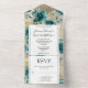 Romantische Aquamarine Grün-Champagner-Rose Blumen All In One Einladung