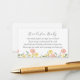 Eine Reservierungskarte für Babydusche. Mit einer Aquarellgrenze von skurrilen Wildblumen mit Gedicht: "EINE KLEINE ANFRAGE, WIR HOFFEN, NICHT ZU SCHWIERIG BITTE BRINGEN EIN BUCH ANSTATT EINER KARTE, DIE SIE DAS BUCH CHEN, GUT LIEBT ODER NEUE BITTE UNTERZEICHNEN SIE DIE INNEN MIT EINER BOTSCHAFT VON IHNEN!"
