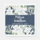 Romantische Hochzeitsnapkins mit floralen Papieren, die ein zartes Aquarellbouquet mit sanften, weißen Blume, Grünpflanzen und anderen botanischen Blättern auf einem preußisch-blauen Hintergrund aufweisen. Bearbeiten Sie die Vorlagenfelder einfach, um Ihre Namen und das Hochzeitdatum in einem klassischen weißen Schriftart hinzuzufügen. Sehen Sie sich die passende "White Gentle Blume - Romantic Blue Wedding Suite"-Kollektion an, um alle koordinierenden Objekte, wie Einladungen, RSVP-Karten, Save the date, und mehr zu sehen. Für weitere Personalisierungen oder Sonderanfertigungen, kontaktieren Sie mich bitte unter acherryonthecake@hotmail.com (bitte 1-2 Arbeitstage).