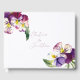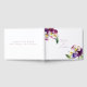 Dieses romantische Gästebuch mit Blumenmotiv empfängt Sie in einem romantischen Ambiente. Der Hintergrund ist schlicht und elegant mit lila Aquarellvioletten. Ein zarter Blumenstrauß mit violetten Blume ist oben links, die Namen der beiden unten gedruckt.