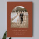 Eine minimalistische und romantische Save the Date-Karte mit einem Foto und einem großen, eleganten Datum.