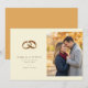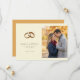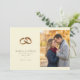 Diese Hochzeit-save-the-date-Karte zeigt ein geteiltes Layout mit eleganten goldenen Hochzeitsringen auf der einen Seite und einem gemütlichen Herbstfoto eines sich umarmenden Paares auf der anderen. Das Design verwendet eine weiche, erdige Farbpalette, darunter Beige, Gold, Braun und gedämpfte Grüntöne, die eine warme und romantische Atmosphäre schaffen. Die Typografie ist sauber und klassisch und unterstreicht das Gesamtthema zeitloser Eleganz. Perfekt für Paare, die einen zarten und intimen Ton für ihre bevorstehende Hochzeit setzen möchten, kombiniert diese Vorlage modernen Minimalismus mit herzlicher Bildsprache.
