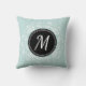 Schönes Kissen mit personalisiertem Monogramm mit blass-blauen und weißen Blumenkissen.