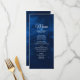 Dieses romantische Hochzeitsmenü bietet einen dunkelblauen Hintergrund mit Sternen und weißen kontrastierenden, eleganten Schriftart. Sie können Ihre Menüdetails hinzufügen, indem Sie auf den Link Anpassen klicken. Dies ist Teil einer wunderschönen Hochzeitssuite mit passenden Tischnummern, Platzkarten und vielen anderen Gegenständen.