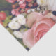 Weiche rosa Rosen und weiße Blume in romantischem Bouquet auf dekorativem Papiertaschentuch mit Band an der Seite, um Ihre Anpassung hinzuzufügen. Ein attraktiver Weg, um eine Marke oder eine Business-Website zu fördern oder eine Feier zu feiern.