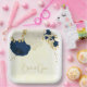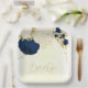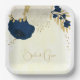 Romantische marineblau-weiße Blume mit goldenen Blätter botanische Hochzeitszettel.