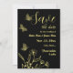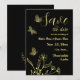 Einzigartige Hochzeit speichern Sie die Dattelkarte mit romantischen und eleganten goldenen Blume und Schmetterlingen auf schwarzem Hintergrund. Für mehr passende Produkte klicken Sie auf die obige Kollektion oder kontaktieren Sie mich.