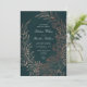*das ist nicht in echter Folie gedruckt, bitte beachten* Romantische Blume Wreath Copper Wedding Einladung für eine schöne formelle Hochzeit. Handgezeichnete Originalbilder. Stilvolle klassische feierliche Hochzeit. Fake Rose Gold und smaragdgrüne Farben.