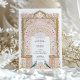 Diese elegante Hochzeitseinladung besticht durch einen atemberaubenden Blumenbogen mit aufwändigen Golddetails, inspiriert von königlichen indischen und Rokoko-Architekturmotiven. Der weiche Duft und die Elfenbeinfarben harmonieren nahtlos mit zarten botanischen Schnörkeln und schaffen eine zeitlose und romantische Ästhetik. Zwei wunderschön illustrierte Pfauen am Fuß fügen eine symbolische Touch von Liebe und Wohlstand hinzu und machen dieses Design ideal für große Hochzeiten, kulturelle Feiern und Feierlichkeiten zum Ziel. Die raffinierte Typografie verstärkt die luxuriöse und künstlerische Komposition und macht sie zu einer perfekten Wahl für Paare, die das edle Kunsthandwerk und die exquisiten Details schätzen.