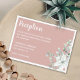 Diese elegante und romantische Hochzeitsempfehlung mit einem hübschen, feinen, weißen Blume-Bouquet in Aquarellfarben an einer Ecke, auf einem klassischen pastellrosa Hintergrund mit weißem Rand. Bearbeiten Sie die Vorlagenfelder einfach, um die Informationen und den Speicherort Ihres Empfangs in einem modernen und einfachen, weißen Schriftart mit allen gängigen Datenträgern hinzuzufügen. Diese Empfang-Umschließungskarte ist Teil der Kollektion "Weiße sanfte Blume - Romantische Rosa Hochzeitssuite" mit vielen aufeinander abgestimmten Gegenständen, um eine einzigartige Hochzeitssuite zu schaffen. Für weitere Personalisierungen oder Sonderanfertigungen, kontaktieren Sie mich bitte unter acherryonthecake@hotmail.com (bitte 1-2 Arbeitstage).
