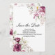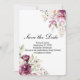 Elegant und romantisch, die Romantische Blütenpiel Save the Date Karten mit einem hellen Hintergrund mit Aquarellfarben Blume in Pflaume, rot Rosa und Elfenbein. Diese anpassbare Vorlage eignet sich perfekt für Hochzeiten, Verlobungen, Brautpartys und besondere Anlässe. Personalisieren Sie den Text so, dass er zu Ihrem einzigartigen Event passt, ob es sich um eine moderne Veranstaltung mit schwarzer Krawatte oder um eine Vintag inspiriert Feier handelt. Die raffinierte Blumenstruktur schafft eine zeitlose Ästhetik, ideal für Paare, die eine Mischung aus Eleganz und Romantik suchen. Perfekt für die Handbefestigung!