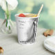Romantische Bridal Sketch Wedding Tasse - Eleganter französisch Inspiriert Keepake Fügen Sie Ihren Hochzeitsaufenthalten eine Touch Eleganz hinzu. Dieser stilvolle Papiertasse mit einem zarten Bleistift zeichne auf einem Mannequin ein Brautkleid, ein Vintages Bouquet in der Nähe und eine weiche, rosa Duftflasche als einziges farbiges Detail. Ideal für schicke Brautpartys, Proben oder Hochzeitsfeiern mit einem romantischen Schwarz-Weiß-Thema. Anpassbar mit Namen und Datum des Paares.