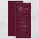 Romantische Burgund-Kalligrafie-Abendmenü Menükarte