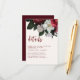 Diese elegante Burgunder- und Rotblütenzettel-Kapselkarte zeigt Ihre Hochzeitsdetails in modernem Schriftsatz mit Aquarell-Blume und botanischem Blattwerk in Wüste inspirierte Erdtontöne mit Bordeaux-, Rot-, Maronen- und Elfenbeinfarbe mit warmem Kupferfarbigem Kupferton.Eine perfekte Rottöne-Hochzeitskarte für Herbst, Sommer-, Frühjahr-, Frühjahr-, Herbst-, Herbst-, Herbst- und Winterhochzeit und Winterhochzeiten und Winterhochzeiten