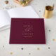 Dieses romantische burgundische kalligraphische monogramm Hochzeitsgast-Buch ist perfekt für eine einfache Hochzeit. Das moderne klassische Design besticht durch extravagante Wirbel und skurrile Schnörkel mit herrlicher eleganter, handgezeichneter Imitat-Champagner-Goldtypografie. Personalisieren Sie die Frontabdeckung und die Wirbelsäule mit den Namen des Paares und dem Hochzeitstag. Bitte beachten Sie: Dieses Design enthält keine echte Goldfolie. Es ist eine hochwertige Grafik, die wie Goldfolie aussieht.