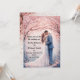 Laden Sie Ihre Lieben ein, Ihren besonderen Tag mit dieser wunderschön gestalteten Einladungskarte zu feiern. Mit einem zarten Aquarellbild eines Paares, das unter einem blühenden Kirschblütenbaum umarmt ist, verwendet diese Karte eine weiche pastellfarbene Farbpalette aus Pink, Blues und Weiß. Eleganter Kalligrafietext fügt eine Touch von Eleganz hinzu und lädt zum Feiern von Liebe und Einheit ein. Das Ambiente der Karte ist romantisch und ruhig und erinnert an Gefühle des Glücks und der Freude. Ideal für einen unvergesslichen Hochzeitstag. Personalisieren Sie Ihre Daten für eine einzigartige Touch.