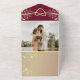 Stillose Eleganz mit dieser bordeauxroten Einladung zur Hochzeit, die Vintage und chinesische Blumenkunst harmonisch kombiniert. Delikate goldene Wildblumen, inspiriert durch klassische Chinoiserie-Motive, verleihen der Touch einen raffinierten Charme, während ein romantisches Herzmotiv und ein stilvolles Drehbuch das raffinierte Aussehen des Hauses noch verstärken. Dieses Design bietet modernen Komfort mit Platz für drei Fotos des Ehepaares und einem QR-Code für einfachen UAWG oder den Zugang zu Ihrer Hochzeitswebsite. Ideal für Herbst- oder Winterhochzeiten mit einer kühlen, raffinierten Ästhetik kombiniert diese Einladung klassische Schönheit und Praxisnähe nahtlos. Bitte beachten Sie: Diese Einladung erfordert einen separaten Briefumschlag. Wir empfehlen die Verbindung mit einem A9-Umschlag (5,75" x 8,75") für die beste Passform.