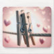 Zwei Kleiderbügel aus Holz sind an einem Seil befestigt und neigen sich liebevoll aufeinander mit einem Hintergrund aus dem Herzen
