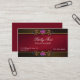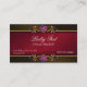 Elegante kundenspezifische Visitenkarte, mit einem dunkelroten Damast, im mittleren und braunen Hintergrund, auf Spitze und Unterseite der Front der Karte. Ein dekorativer goldtone Streifen läuft über die Spitze und die Unterseite, mit dem romantischen vergoldeten Schauen rosa und blaues Blumenjuwel wie Dekorationen. Die Rückseite der Karte ist in einem festen Rot erfolgt. Weißer Text ist völlig kundengerecht und bereit zu personifizieren. Diese Karte gibt eine reizende Erklärung, in der Eleganz und in der Art ab.
