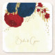 Romantische dunkelrote und marineblaue Blumen mit goldenen Blätter botanischer Hochzeitspapier Untersetzer.