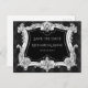Ein elegantes, romantisches, verziertes Gothic, grau und schwarz Damast Hochzeitsdesign mit einem aufwändigen französischen Rahmen. Save the Date Hochzeitskarten sind eine schöne Möglichkeit, um Ihren Gästen das Wissen über Ihre bevorstehende Hochzeit lassen und den Termin für ihre Kalender zu sperren. Personalisieren Sie mit dem Namen der Braut und des Bräutigams und dem Datum.