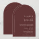 Romantische Elegante Minimalistische Dunkle Burgund Arch Wedding Einladung Diese Einladung strahlt moderne Eleganz mit minimalistischem Design aus. Die sanften Kurven und die elegante Halbbogenkonstruktion bieten eine Mischung aus zeitgenössischem Stil und zeitlosem Charme. Reiche dunkle Bordeaux- und Marontöne verbinden sich wunderbar mit einem hellen cremefarbenen Schriftart und schaffen ein warmes und raffiniertes Ambiente.