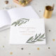 Elegantes botanisches HochzeitsGästebuch in Aquarellfarbe mit schönen handgezeichneten Olivenzweigen, die Ihre Details abbilden. Personalisieren Sie mit Ihren Namen und Hochzeitsdatum in der Natur gefärbte Typografie.