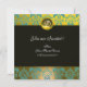 Originelle, zeitgenössische Aquarellmalerei mit goldener Folie und strahlenden Farbtönen in leuchtendem Grün, Gelb Orange , aquamarin, Turquase, Weiß. Elegante, wunderschöne, brünette, rote, grüne, glitzernde goldene Stoffe aus einem barocken Kostüm mit Pfauenfedern .Malerei von Bulgan Lumini (c).Diese coole und künstlerische Karte ist perfekt für Hochzeiten,Brautpartys,süße 16,Quinceanera Geburtstagspartys, kostspielige Tanzbälle, romantische Verlobungen, speichern Sie die Datums-Ankündigungen, Cocktails, Feiern, Jubiläen, Ansammlungen,