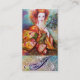 Elegantes, farbenprächtiges, klangvolles Design in hellgrün, gelb orange , aquamarin, türkisfarben. Wunderschöne brünette Frau, rot-grüne, glitzernde goldene Stoffe aus einem barocken Kostüm mit Pfauenfedern. Originelle Aquarellmalerei mit goldener Folie und leuchtenden Farben. Diese coole und künstlerische Karte ist perfekt für Modedesigner,Haarstylisten, Stummers, Bekleidungsdesigner, Besitzer von Boutiquen, machen Künstler, Kosmetikerinnen, Privatkunden, Kleiderberater und andere Kreativberufe aus. Zazzle.com