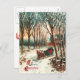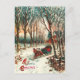 Weihnachts-Weihnachtsbild eines Pferd gezeichnet Schlittens mit einem Paar darin. Es ist eine schöne Winternacht mit hohen, schneebedeckten Bäumen und einem Pfad im Wald.