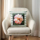 Romantische Frühlingspfirsiche auf grünen Streifen Kissen