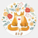Romantische Füchse und rustikale Blätter Runder Aufkleber