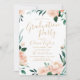 Moderne Kalligraphie Graduiertenschrift umgeben von Aquarellpfirsichblüten und botanischem Grün, elegant und romantisch, ideal für Abschlussfeier im Frühling und Sommer.