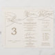 Diese romantische Tischnummer aus Gold und Elfenbein ist ideal für eine Hochzeit. Das moderne klassische Design besticht durch extravagante Wirbel und skurrile Schnörkel mit herrlicher eleganter, handgezeichneter Imitat-Champagner-Goldtypografie. Personalisieren Sie Ihre Tischnummern mit Ihren Namen und Hochzeitsdatum, die Speisekarte, Getränkekarte, die Reihenfolge der Veranstaltungen und eine Dankesbotschaft. Diese Tischnummer erfordert etwas Heimarbeit. Verwenden Sie die Faltlinien und Klebepunkte oder das doppelseitige Klebeband zum Zusammenbauen.