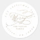 Diese romantischen goldgelben, kreisförmigen Aufkleber sind perfekt für eine einfache Urlaubskarte oder einen Einladungsumschlag. Das moderne klassische Design besticht durch extravagante Wirbel und skurrile Schnörkel mit herrlich eleganten, handgezeichneten Imitaten, die auf Champagner-Goldfolie-Typografie setzen.