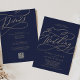 Dieses romantische Gold und die Marine in einem QR-Code Hochzeitseinladung ist perfekt für eine einfache Hochzeit. Das moderne klassische Design besticht durch extravagante Wirbel und skurrile Schnörkel mit herrlich eleganten, handgezeichneten Imitaten, die auf Champagner-Goldfolie-Typografie setzen. Rett Papier, indem man die Details auf der Rückseite der Hochzeitseinladung statt auf einer separaten Kapselkarte angibt. Fügen Sie Ihren Gästen einen QR-Code für den Karo Ihrer Hochzeitswebsite oder für UAWG einfach online (optional) ein. Bitte beachten Sie: Dieses Design enthält keine echte Goldfolie. Es ist eine hochwertige Grafik, die wie Goldfolie aussieht.