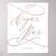 Dieses romantische goldkalligraphische Zigarrenschild ist ideal für eine Hochzeit. Das moderne klassische Design besticht durch extravagante Wirbel und skurrile Schnörkel mit herrlich eleganten, handgezeichneten Imitaten, die auf Champagner-Goldfolie-Typografie setzen. Bitte beachten Sie: Dieses Design enthält keine echte Goldfolie. Es ist eine hochwertige Grafik, die wie Goldfolie aussieht.
