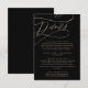 Diese romantische Goldkalligrafie schwarze Detail-Einsteckkarte ist perfekt für eine einfache Hochzeit. Das moderne klassische Design besticht durch extravagante Wirbel und skurrile Schnörkel mit herrlich eleganten, handgezeichneten Imitaten, die auf schwarzem Hintergrund mit Champagner-Goldfolie-Typografie bedruckt sind. Bitte beachten Sie: Dieses Design enthält keine echte Goldfolie. Es ist eine hochwertige Grafik, die wie Goldfolie aussieht.