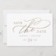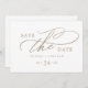 Diese romantische Goldkalligraphie QR Code horizontal Save the Date Karte ist perfekt für eine einfache Hochzeit. Das moderne klassische Design besticht durch extravagante Wirbel und skurrile Schnörkel mit herrlicher eleganter, handgezeichneter Imitat-Champagner-Goldtypografie. Bitte beachten Sie: Dieses Design enthält keine echte Goldfolie. Es ist eine hochwertige Grafik, die wie Goldfolie aussieht.