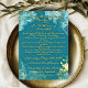 Treten Sie ein in die Zeit zurück zu einer Zeit der Romantik und Romantik mit unserer Aquamarinen grünen Marmorfantasie Hochzeitsfeier. Diese Einladung, die mit exquisiter Liebe zum Detail gestaltet wurde, erfasst das Wesen einer vergangenen Epoche mit aufwändiger Goldkalligraphie und verzierten Verzierungen.
