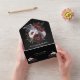 Dieses gotische, blumengeschmückte Hochzeitsdesign zeichnet sich durch eine einfache, launische Aquarellbild eines Raben aus, das auf einem Bouquet steht. Ideal für eine zeitlose romantische Hochzeit oder einen anderen besondere Anlass. Es eignet sich hervorragend für ein kurioses Halloween-Ereignis im Herbst oder für ein außergewöhnliches Winterereignis in lässiger oder formaler Umgebung.