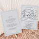 Dieses romantische graue Kalligraphie-Rahmen in einer Einladung ist perfekt für eine einfache Hochzeit. Das moderne klassische Design besticht durch extravagante Wirbel und skurrile Schnörkel mit prächtiger, eleganter Typografie und einem formalen Rahmen.