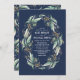 Romantische Grünanlage Wreath Navy Blue Hochzeit i Einladung