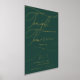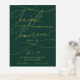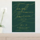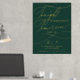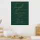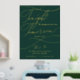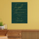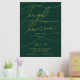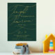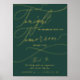 Diese romantische grüne und goldene Folie morgen mache ich Probe Dinner Plakatzeichen ist perfekt für eine einfache Hochzeit. Das moderne klassische Design besticht durch extravagante Wirbel und skurrile Schnörkel mit einer prächtigen eleganten, luxuriösen Goldfolien-Typografie auf einem dunkelgrünen Hintergrund. Auf dem Schild steht: "Heute feiern wir mit Ihnen, morgen sagen wir, ich tue".