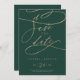 Diese romantische grüne Kalligraphie-Save the Date-Karte ist ideal für eine einfache Hochzeit. Das moderne klassische Design besticht durch extravagante Wirbel und skurrile Schnörkel mit herrlich eleganten, handgezeichneten Imitaten, die auf Champagner-Goldfolie-Typografie setzen.