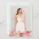 Machen Sie Ihre süße 16 Geburtstagsfeier mit unserer romantischen, handgemalten, rosa Blumenladen zu einem besonderen Erlebnis! Diese hübsche und schicke Einladung besticht durch eine wunderschöne Fassade aus handbemalten rosa Blume und üppig grünen Blätter, die eine reizvolle und lebendige Gartenlandschaft schaffen und Ihr Foto auf der Rückseite des Hauses vervollständigen. Das zarte Aquarelldesign verleiht dem Ganzen eine strahlende und romantische Touch auf einem bearbeitbaren, minzgrünen Hintergrund. Das Wort "Sechzehn" zeichnet sich durch einen luxuriösen Imitat Gold Script Schriftart aus, der Eleganz und Eleganz ausstrahlt. Dieses Hotel im eleganten Sommergarten Sweet 16 Party vereint künstlerische Blumenelemente mit moderner Typografie und ist somit eine hervorragende Wahl für die Feier dieses bedeutenden Meilensteins.
