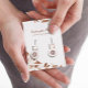 Diese schöne zweiseitig bedruckte Romantische Hintergrundekarte mit einem originellen Aquarellbild von bräunlichen, im Herbst braun gebräuchlichen Blätter auf weißem Hintergrund. Man drückt seine Ohrringe in zwei kleine Punkte. Bitte beachten Sie, dass es keine Löcher gibt. Es ist perfekt für Ohrringe. Diese Karte ist als Vorlage für Ihre einfache Anpassung konzipiert, wo Sie im Namen Ihres Unternehmens und eine Website-Adresse schreiben. Vergessen Sie nicht, auch die Rückseite anzupassen.