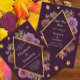 Romantische Herbstdahlienhochzeit: Herbstlaube begleiten einen Blumenrahmen in verschiedenen Schattierungen lila